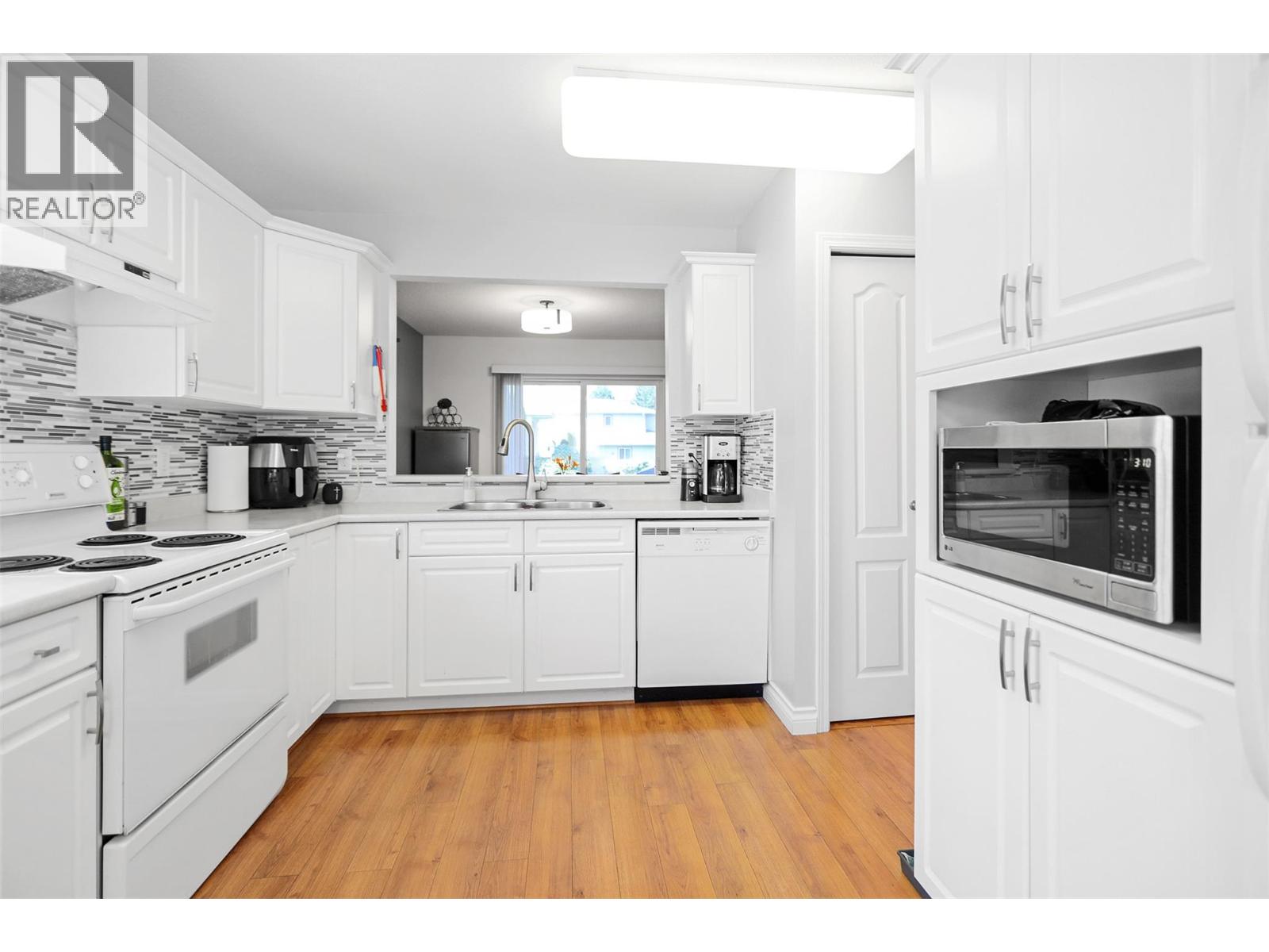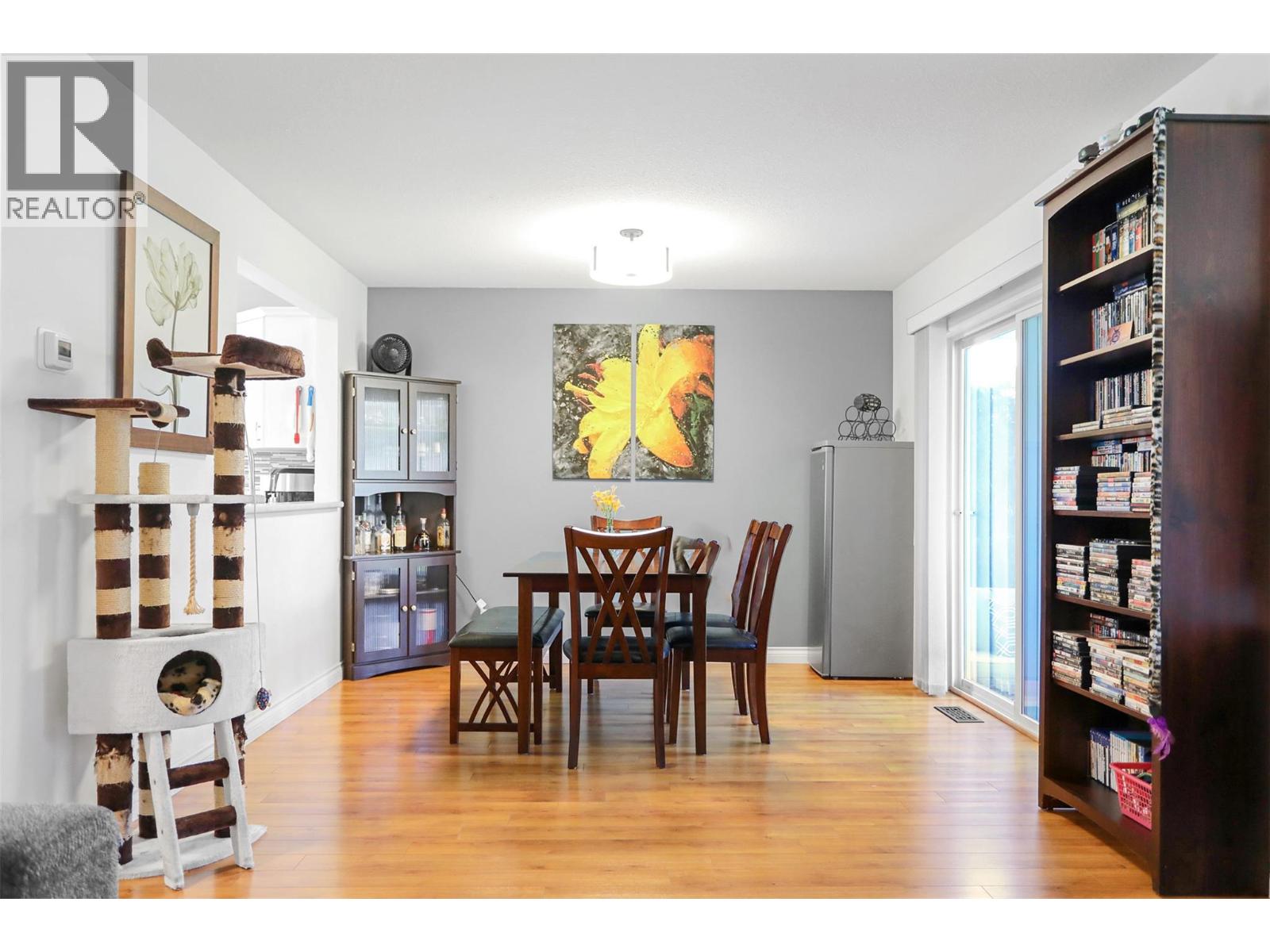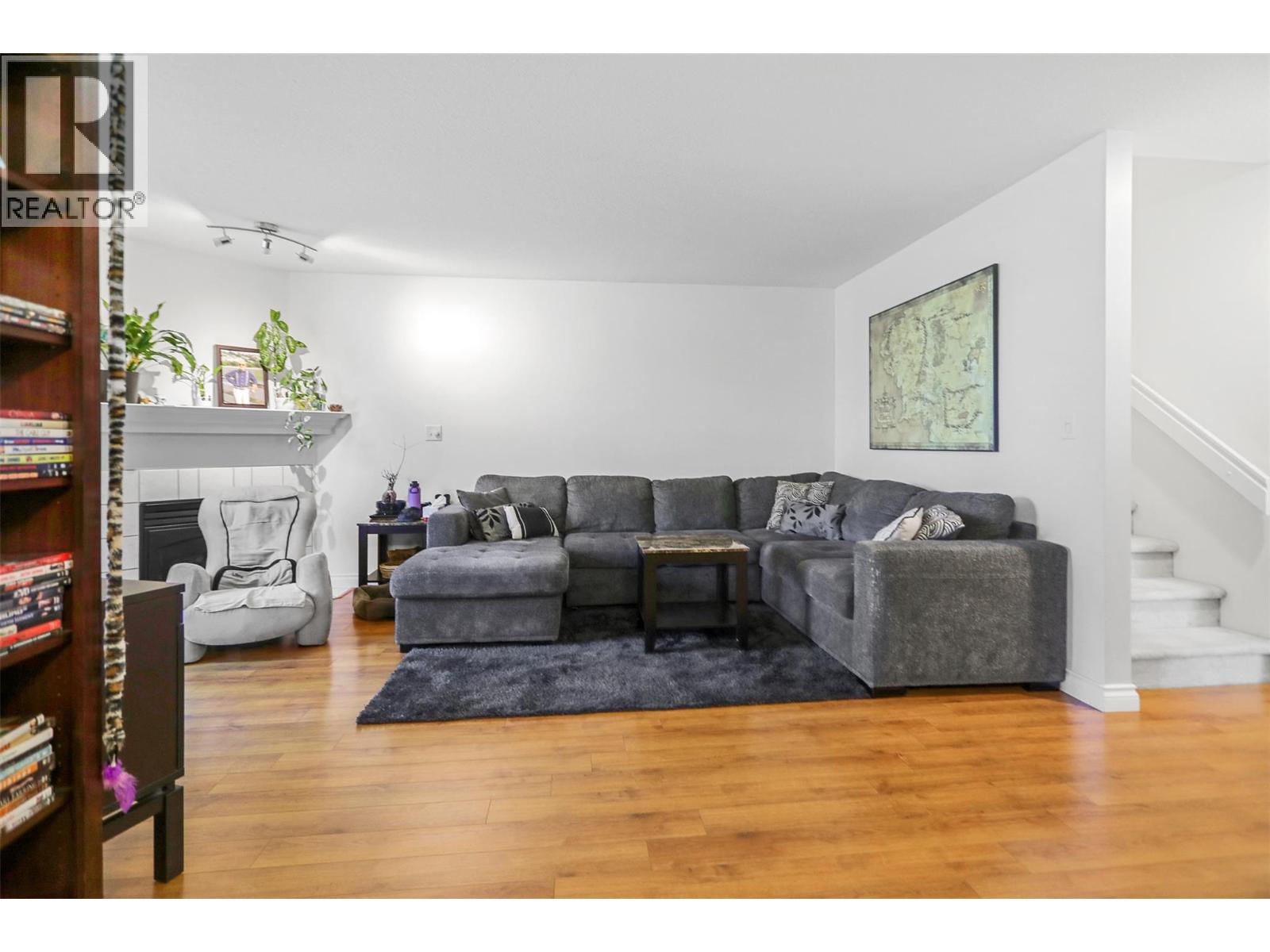 Welcome to your dream townhome in the heart of a vibrant, well-maintained complex! This bright and airy end-unit townhome is flooded with natural light thanks to its extra windows, creating a warm and inviting atmosphere. The main level boasts a spacious kitchen with ample cabinetry and counter space, perfect for culinary enthusiasts, complete with a charming pass-through window to the generous dining/living room area. Adjacent to the dining room, step out onto your private covered patio, where you can relax and enjoy stunning views of lush green space. The kitchen also features a cozy eat-in area, ideal for casual meals. The expansive living room is anchored by a gas fireplace, perfect for cozy evenings. Upstairs, you’ll find two generously sized bedrooms with abundant clothing storage, complemented by a convenient cheater en-suite bathroom. Recent upgrades include a new HWT (25'), furnace (22') and air conditioner (22'), ensuring year-round comfort, and a 2025 roof replacement for peace of mind. The property includes a spacious single-car garage with extra storage and a crawl space for seasonal items, plus a dedicated surface parking spot right outside your front door. Perfectly located, this home is just a short drive from Strathcona Beach and downtown, yet within walking distance to the charming boutique shops and amenities of Guisachan Village. Don’t miss this rare opportunity to own a move-in-ready townhome in an unbeatable location! Schedule your viewing today!