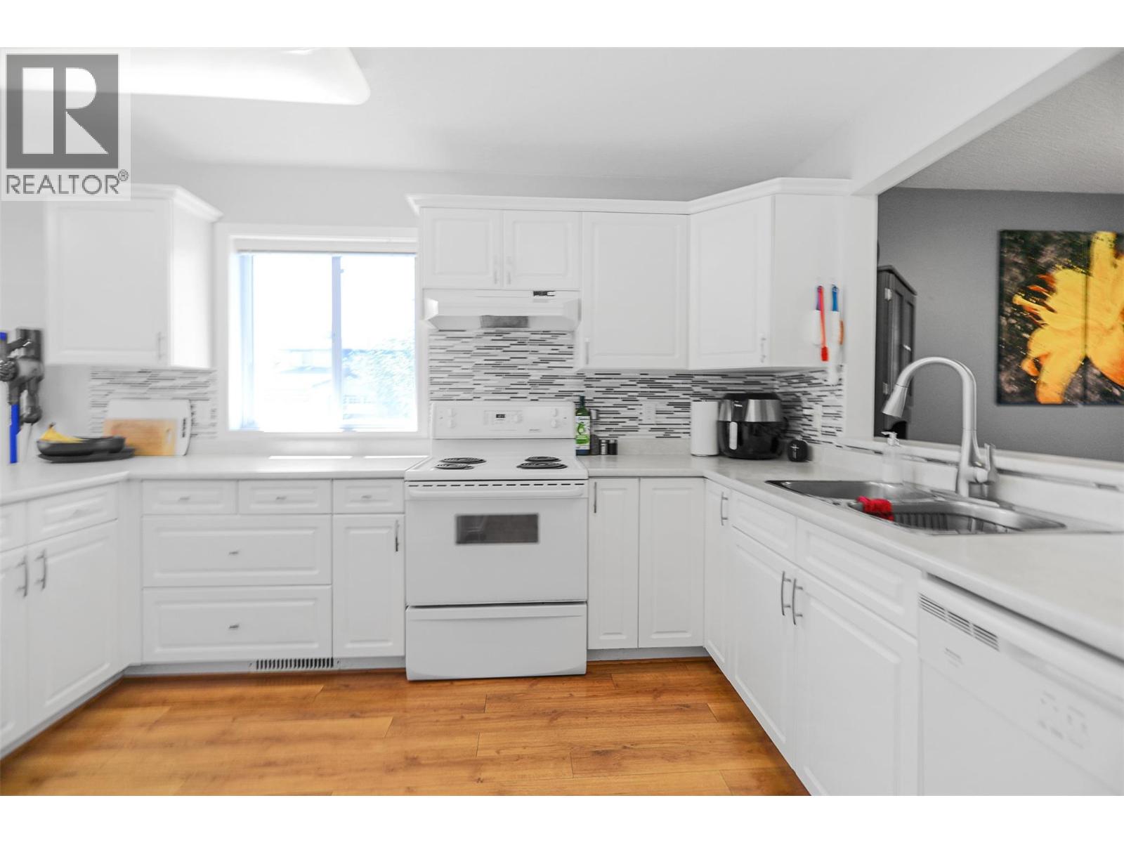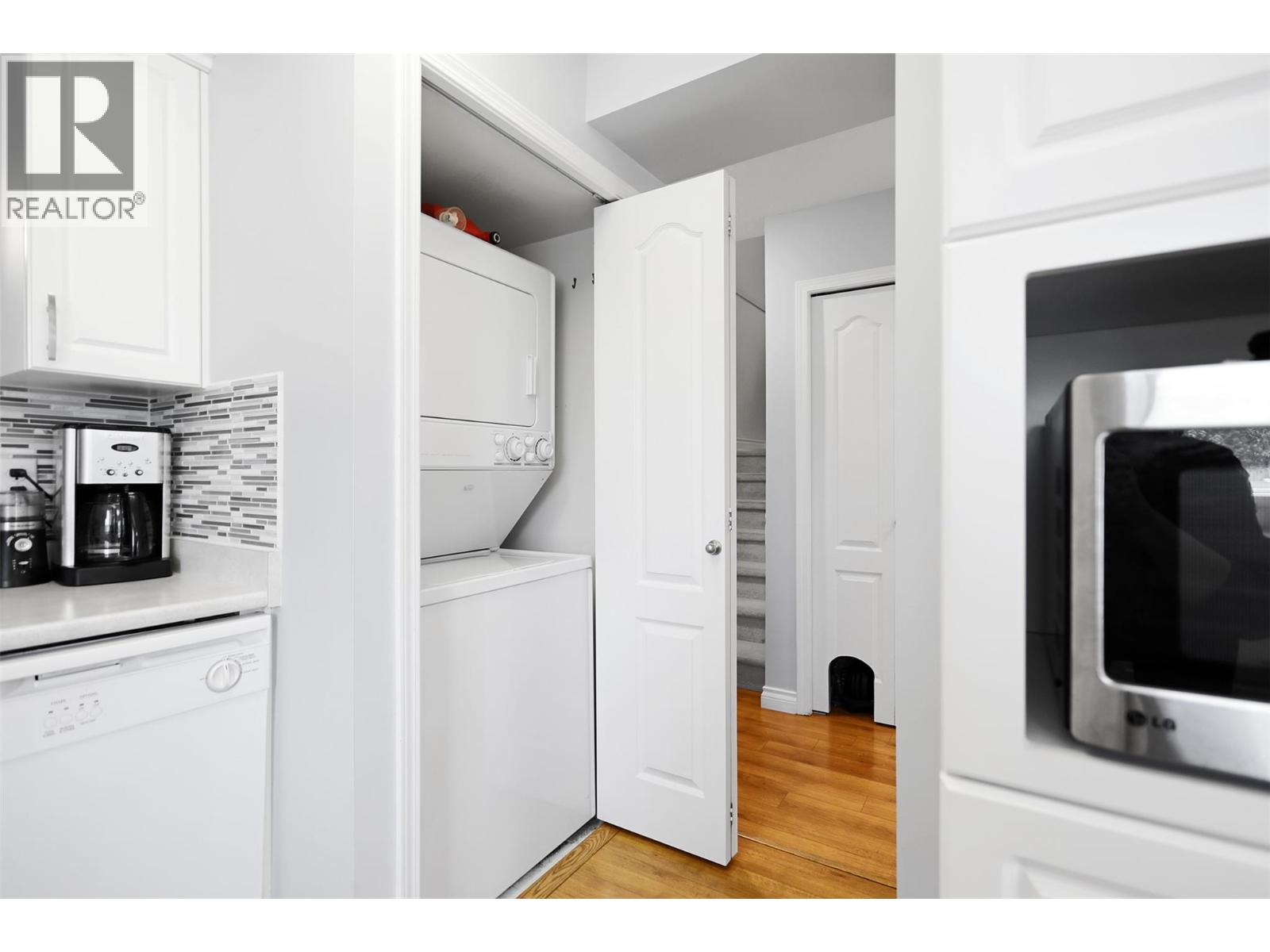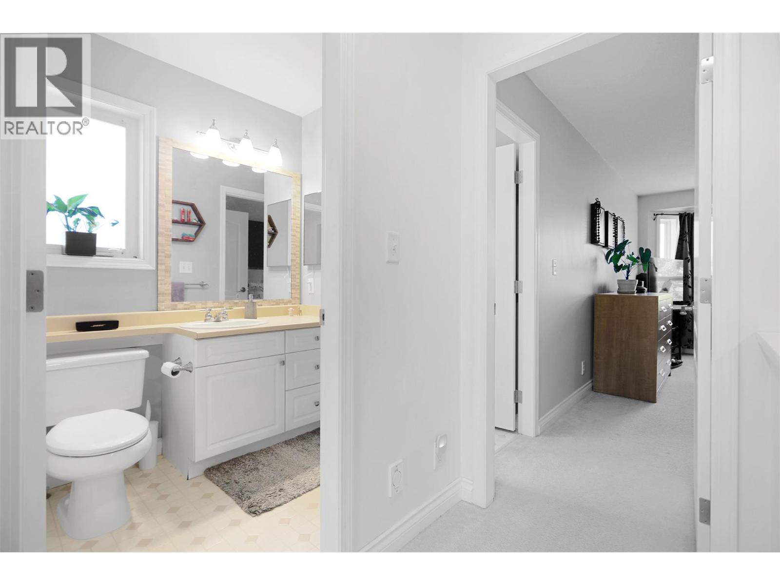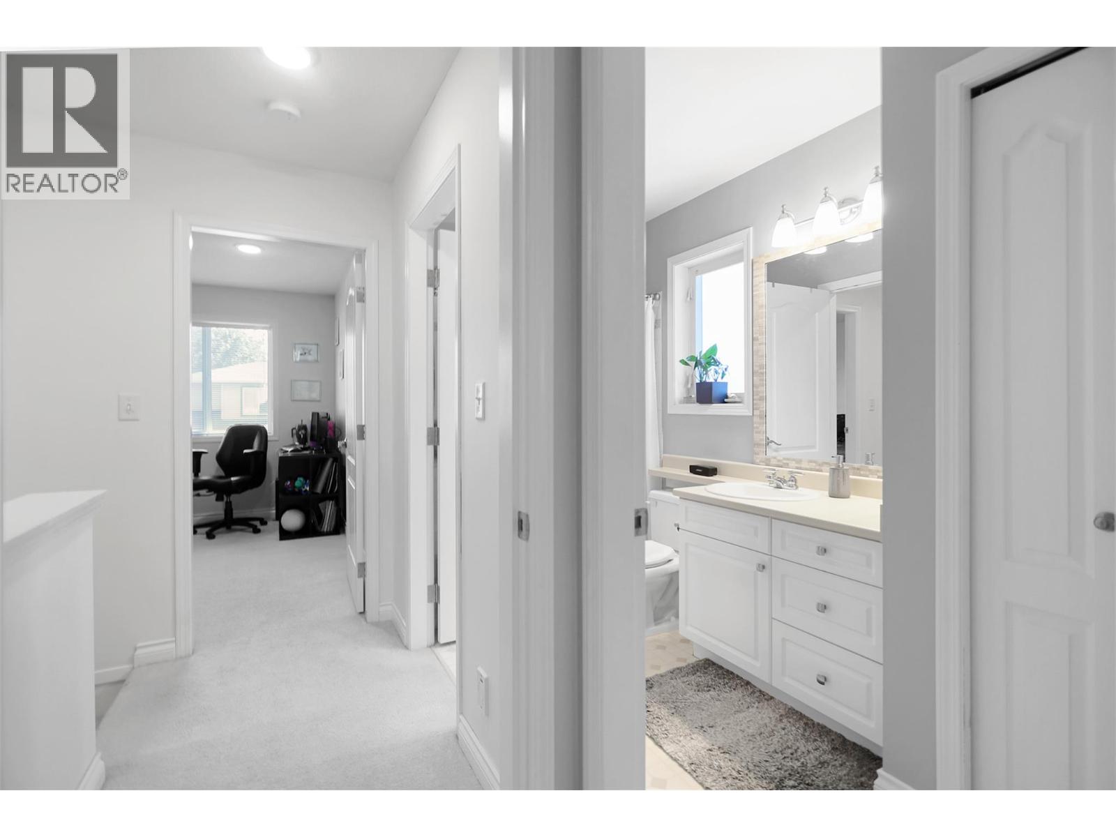 Welcome to your dream townhome in the heart of a vibrant, well-maintained complex! This bright and airy end-unit townhome is flooded with natural light thanks to its extra windows, creating a warm and inviting atmosphere. The main level boasts a spacious kitchen with ample cabinetry and counter space, perfect for culinary enthusiasts, complete with a charming pass-through window to the generous dining/living room area. Adjacent to the dining room, step out onto your private covered patio, where you can relax and enjoy stunning views of lush green space. The kitchen also features a cozy eat-in area, ideal for casual meals. The expansive living room is anchored by a gas fireplace, perfect for cozy evenings. Upstairs, you’ll find two generously sized bedrooms with abundant clothing storage, complemented by a convenient cheater en-suite bathroom. Recent upgrades include a new HWT (25'), furnace (22') and air conditioner (22'), ensuring year-round comfort, and a 2025 roof replacement for peace of mind. The property includes a spacious single-car garage with extra storage and a crawl space for seasonal items, plus a dedicated surface parking spot right outside your front door. Perfectly located, this home is just a short drive from Strathcona Beach and downtown, yet within walking distance to the charming boutique shops and amenities of Guisachan Village. Don’t miss this rare opportunity to own a move-in-ready townhome in an unbeatable location! Schedule your viewing today!