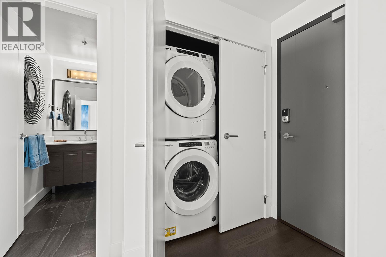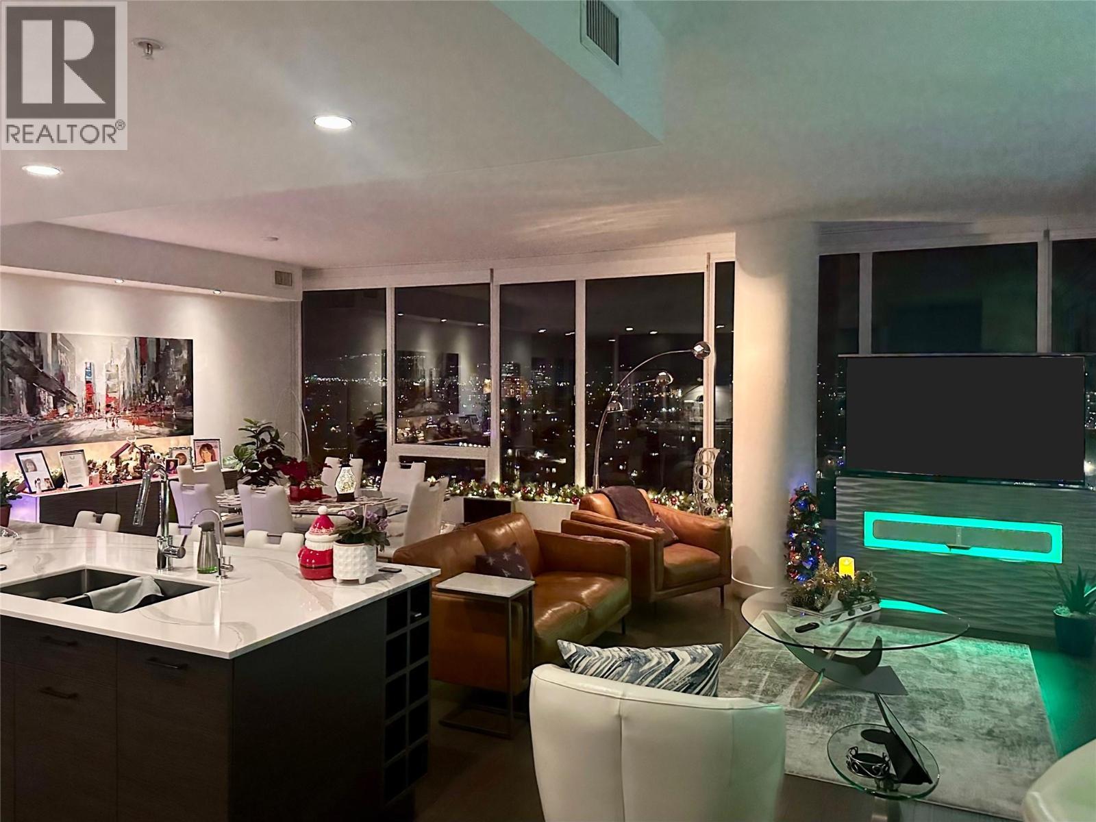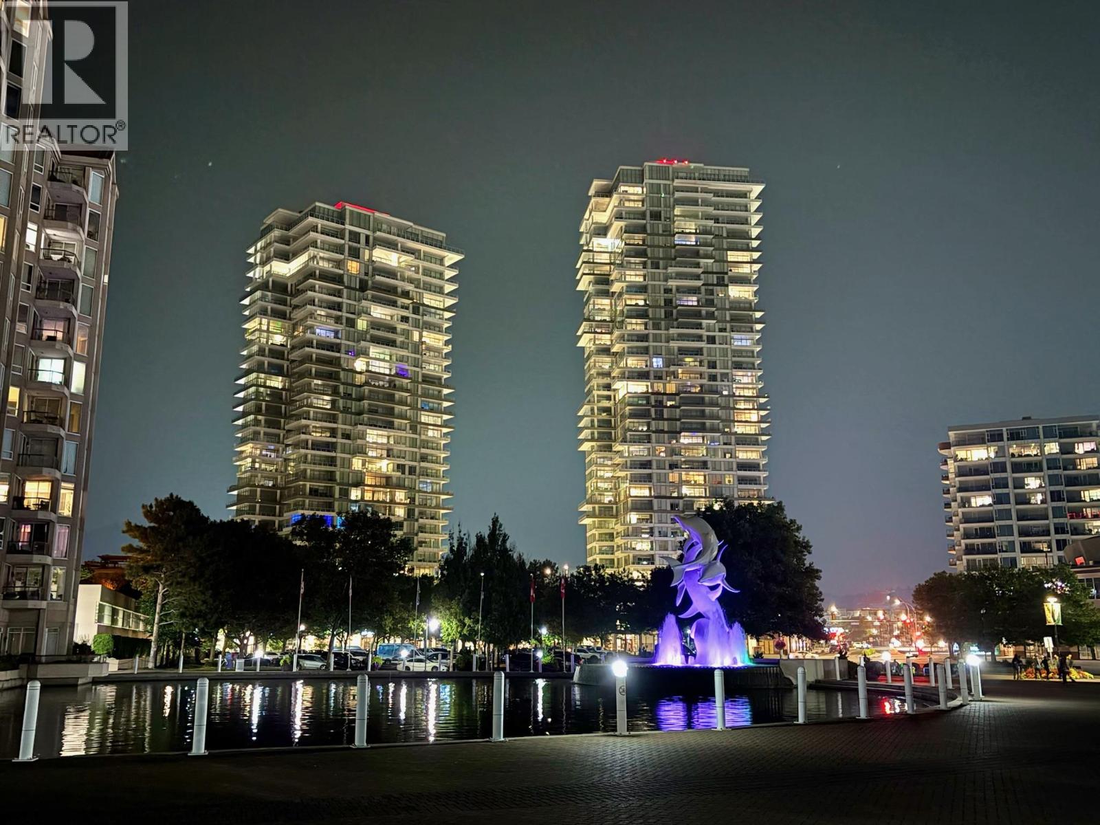 Experience elevated luxury in this stunning corner-unit residence, located at One Water. Step out onto the extended covered deck to take in the most majestic views in Kelowna. Equipped with a gas BBQ hookup, this outdoor space offers a front-row seat to the Yacht Club, the William R. Bennett Bridge, and breathtaking panoramic views of Okanagan Lake and the city skyline. The views continue throughout the home that has approximately $80,000 in meticulous upgrades designed to maximize functionality, storage, and style. The gourmet kitchen features a waterfall quartz countertop, a gas stove, upgraded microwave/convection oven, custom pull-out drawers, water purifier, and a dedicated pantry room with added shelving. The living area is highlighted by custom pot lighting above the hutch, while designer dimmer switches throughout allow you to set the perfect ambiance. The primary suite features custom cabinets with integrated lighting for added storage and aesthetics. The den has been professionally transformed into a functional workspace with a built-in office and cabinetry. Even the utility space has been enhanced with added storage beside the laundry. This offering is completed by a private storage locker that is conveniently larger than most of the standard units in the building. Residents of One Water enjoy first class amenities including two pools, hot tub, fire pits, fitness centre, guest suites and more, all within walking distance to the beach and all downtown has to offer!