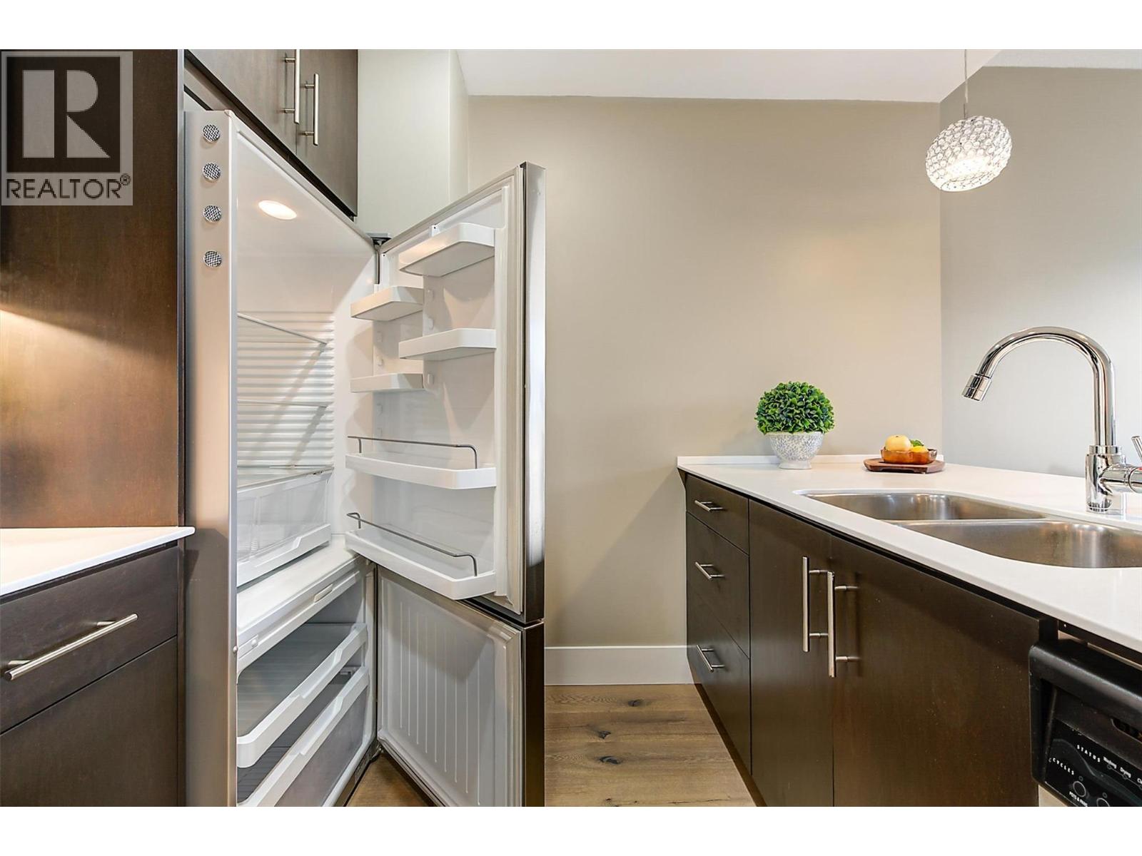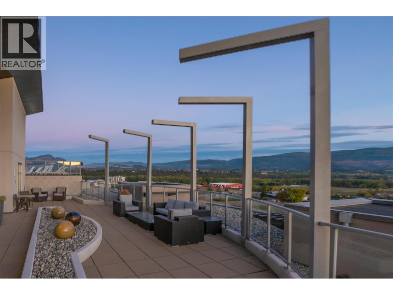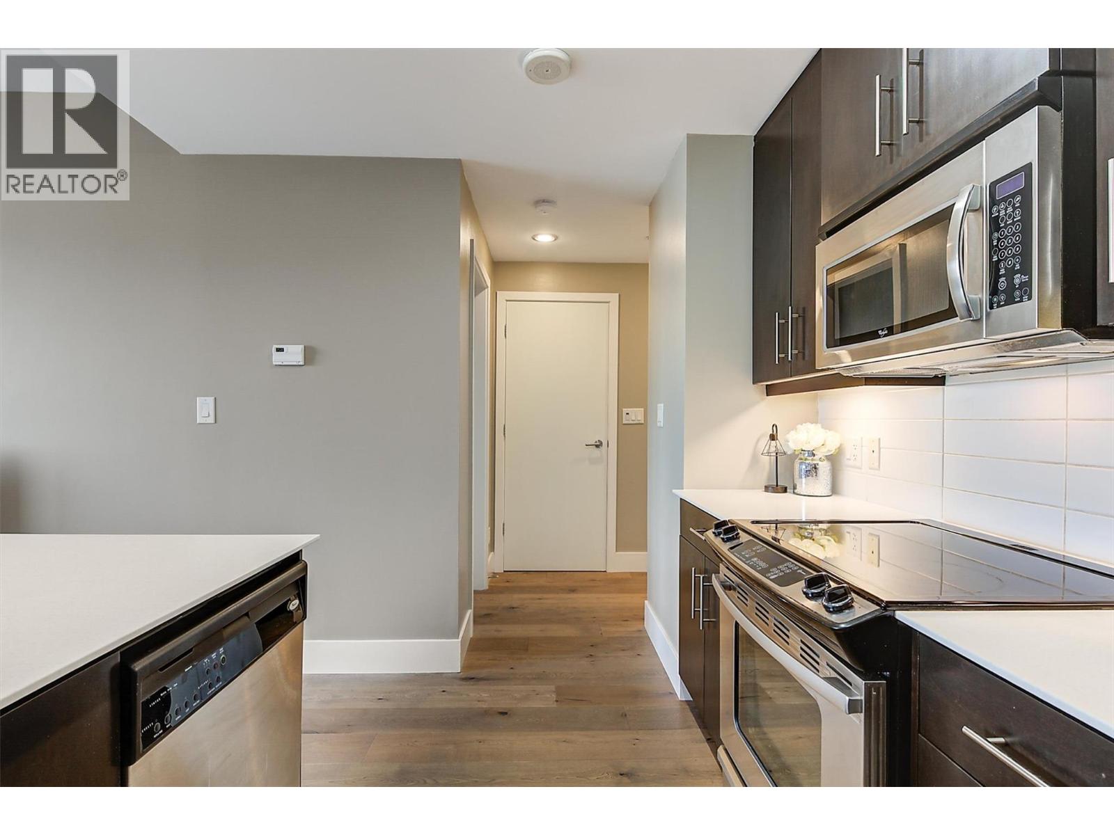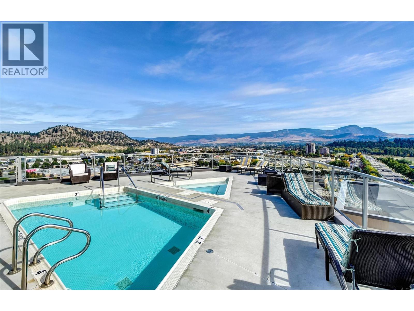 Invue, a stunning high-rise concrete building situated in the heart of Kelowna, featuring an impressive lobby and unparalleled amenities. This exceptional 1-bedroom condo has forced air heating/cooling and has been freshly painted with new hardwood flooring, vacant and ready to move in. The spacious bedroom w/double closets. well designed kitchen offers quartz countertops, stainless steel appliances and eating bar overlooking the living area with 2 accesses to the 'L' shaped sundeck. Invue stands out as one of the few affordable luxury complexes in Kelowna, featuring top-tier amenities. The expansive rooftop patio (on 15th fl) offers various seating areas with breathtaking 360-degree views of the lake, city and valley. The rooftop also features a pool & hot tub w/ladies & mens change rooms. On the second floor, you'll find a spacious fully-equipped gym with men & women changing rooms complete w/steam showers and saunas. There’s also a games area with a ping pong table, a gathering room with a billiard table, and a cozy lounge area. The building is also equipped with convenient features such as a car wash in the parkade and a dog wash station on the second floor, along with 2 guest suites for visitors. Invue is centrally located, providing easy access to downtown and nearby shopping centers. The unit comes with underground parking (#31) and a storage unit (# 59) located in the parkade. Pets are welcome. Remarkably low strata fees considering the luxurious amenities offered.