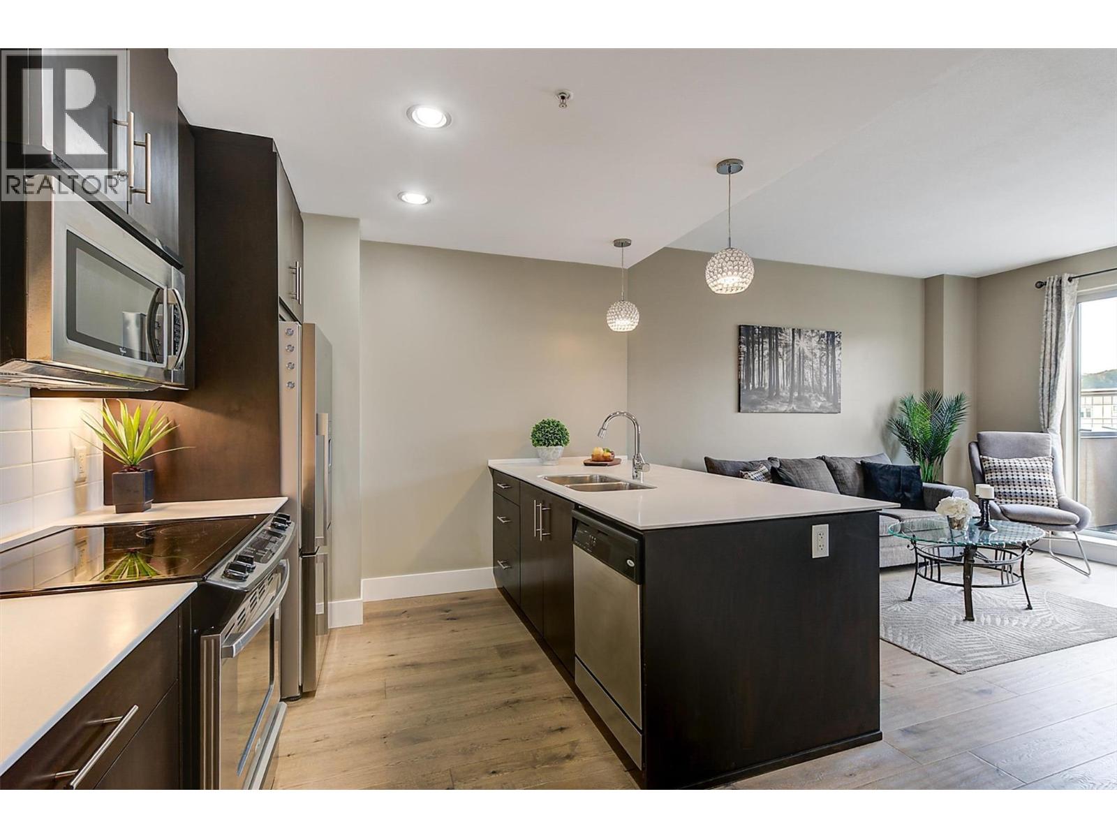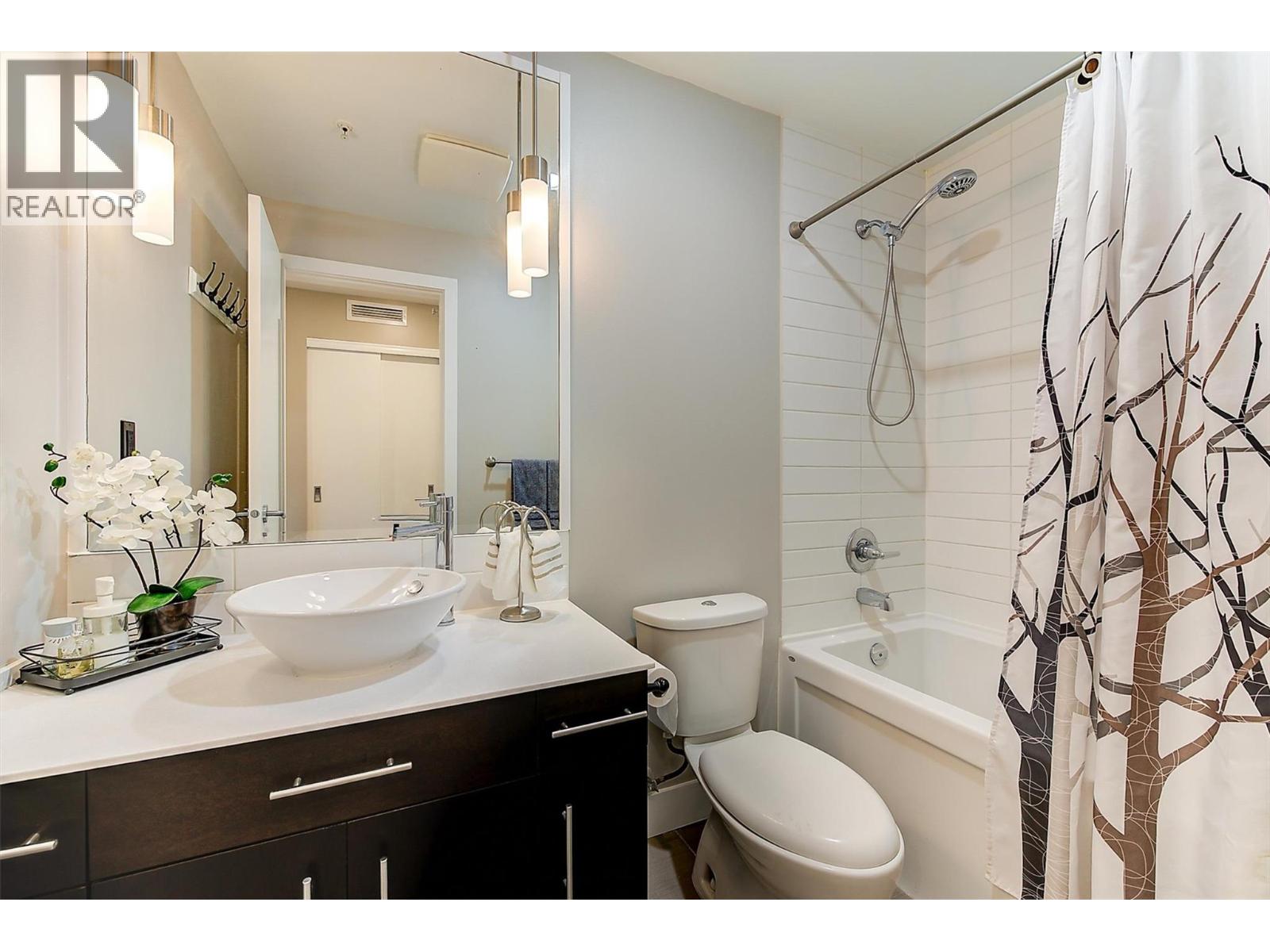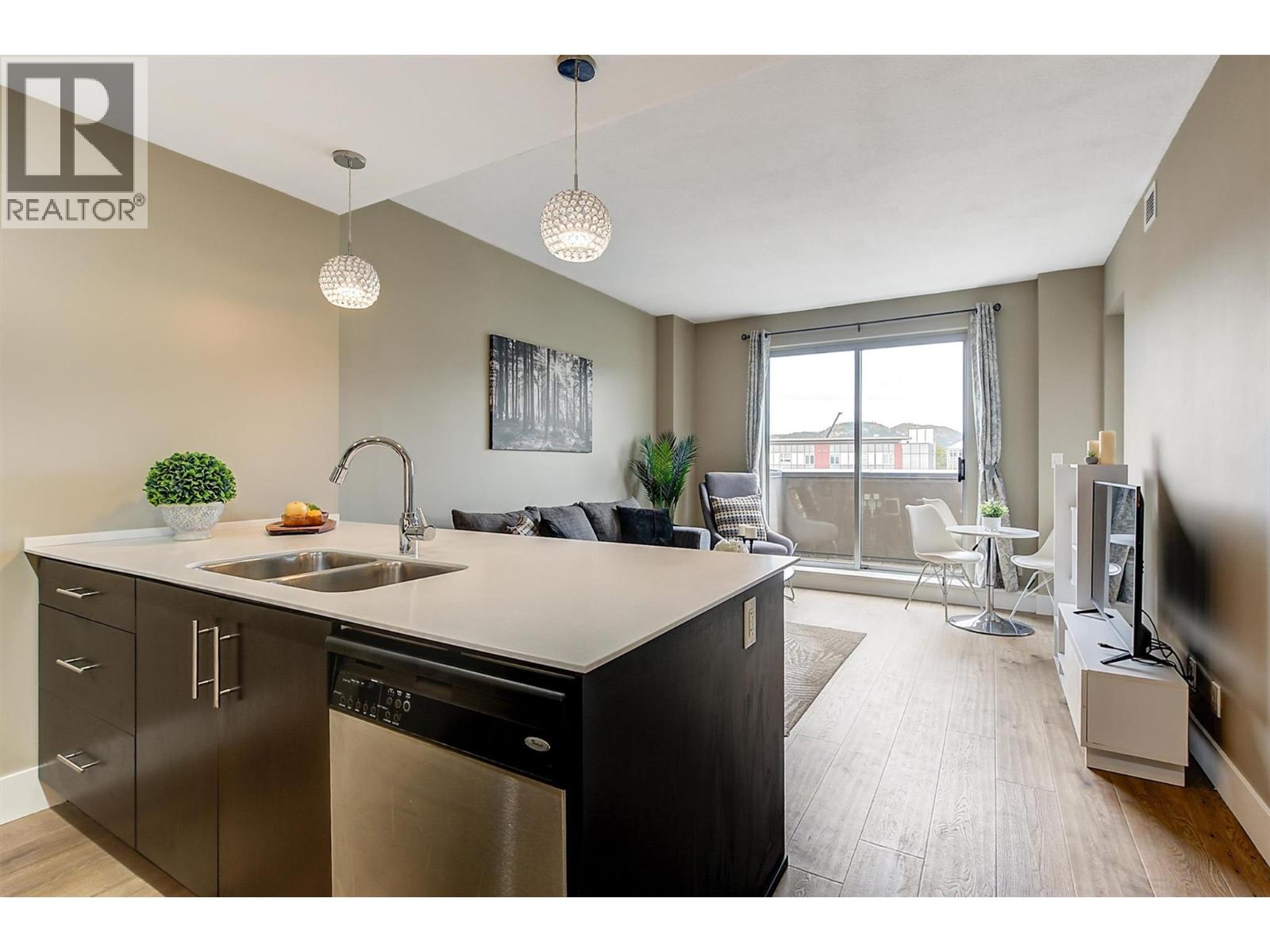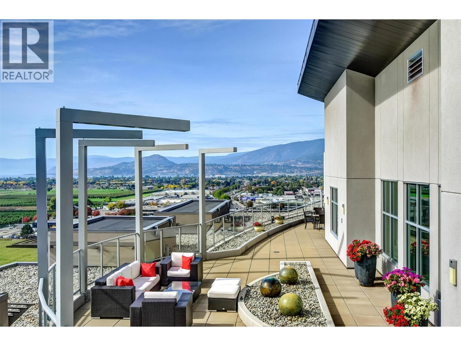 Invue, a stunning high-rise concrete building situated in the heart of Kelowna, featuring an impressive lobby and unparalleled amenities. This exceptional 1-bedroom condo has forced air heating/cooling and has been freshly painted with new hardwood flooring, vacant and ready to move in. The spacious bedroom w/double closets. well designed kitchen offers quartz countertops, stainless steel appliances and eating bar overlooking the living area with 2 accesses to the 'L' shaped sundeck. Invue stands out as one of the few affordable luxury complexes in Kelowna, featuring top-tier amenities. The expansive rooftop patio (on 15th fl) offers various seating areas with breathtaking 360-degree views of the lake, city and valley. The rooftop also features a pool & hot tub w/ladies & mens change rooms. On the second floor, you'll find a spacious fully-equipped gym with men & women changing rooms complete w/steam showers and saunas. There’s also a games area with a ping pong table, a gathering room with a billiard table, and a cozy lounge area. The building is also equipped with convenient features such as a car wash in the parkade and a dog wash station on the second floor, along with 2 guest suites for visitors. Invue is centrally located, providing easy access to downtown and nearby shopping centers. The unit comes with underground parking (#31) and a storage unit (# 59) located in the parkade. Pets are welcome. Remarkably low strata fees considering the luxurious amenities offered.