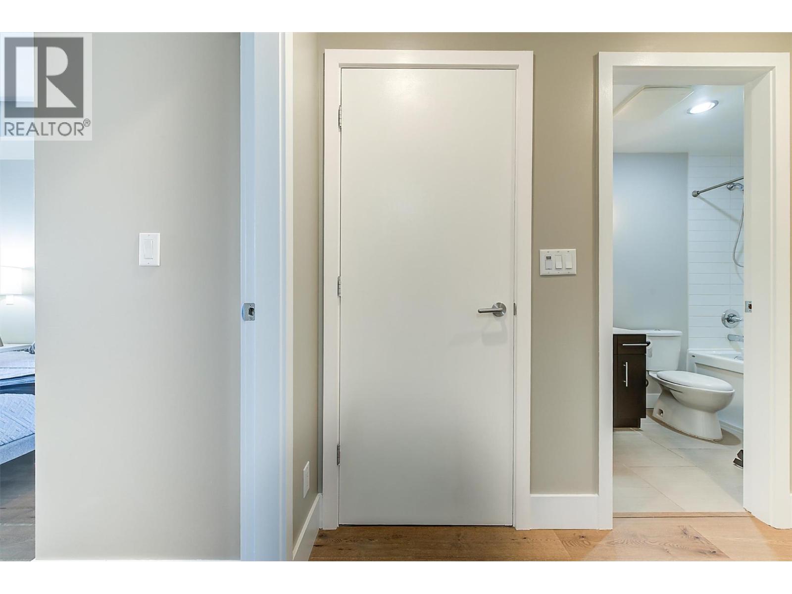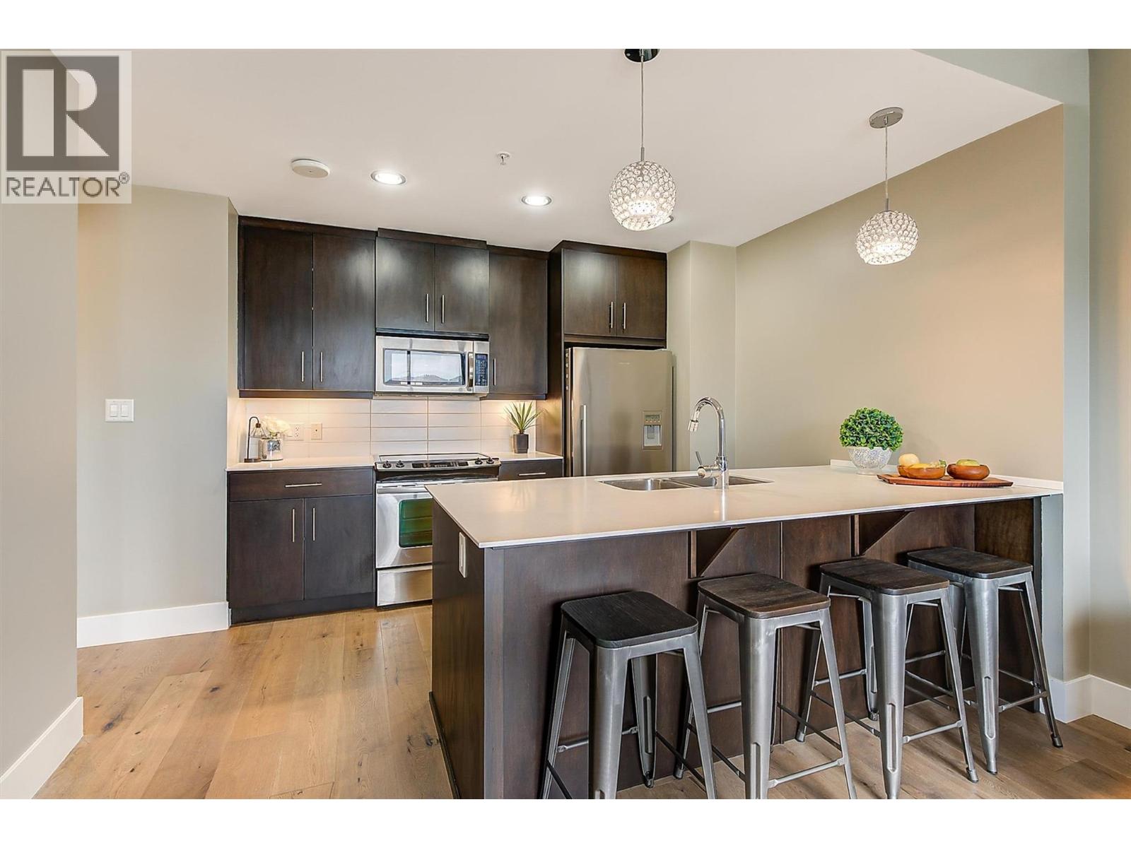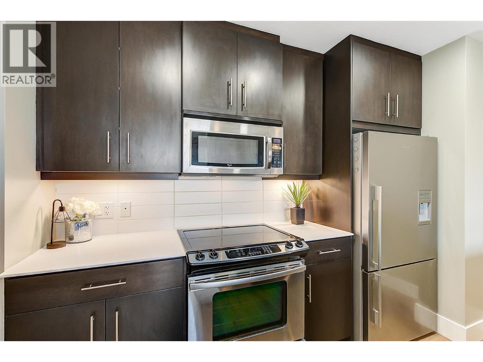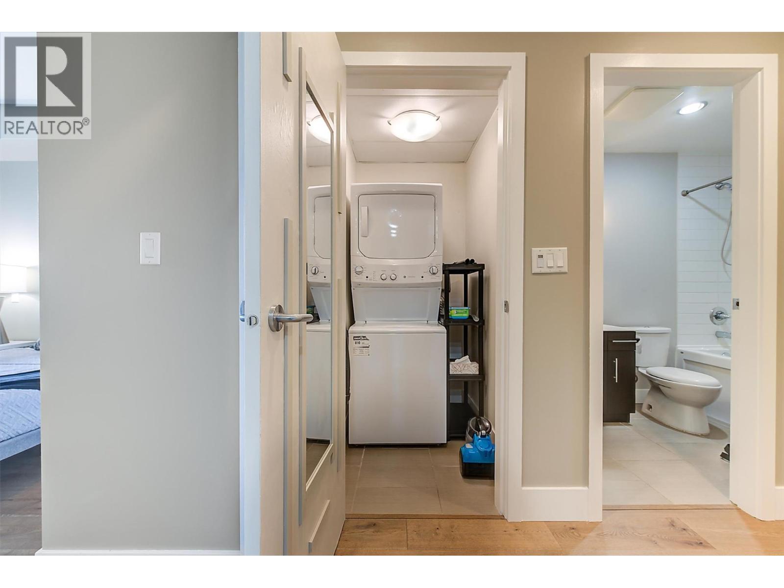 Invue, a stunning high-rise concrete building situated in the heart of Kelowna, featuring an impressive lobby and unparalleled amenities. This exceptional 1-bedroom condo has forced air heating/cooling and has been freshly painted with new hardwood flooring, vacant and ready to move in. The spacious bedroom w/double closets. well designed kitchen offers quartz countertops, stainless steel appliances and eating bar overlooking the living area with 2 accesses to the 'L' shaped sundeck. Invue stands out as one of the few affordable luxury complexes in Kelowna, featuring top-tier amenities. The expansive rooftop patio (on 15th fl) offers various seating areas with breathtaking 360-degree views of the lake, city and valley. The rooftop also features a pool & hot tub w/ladies & mens change rooms. On the second floor, you'll find a spacious fully-equipped gym with men & women changing rooms complete w/steam showers and saunas. There’s also a games area with a ping pong table, a gathering room with a billiard table, and a cozy lounge area. The building is also equipped with convenient features such as a car wash in the parkade and a dog wash station on the second floor, along with 2 guest suites for visitors. Invue is centrally located, providing easy access to downtown and nearby shopping centers. The unit comes with underground parking (#31) and a storage unit (# 59) located in the parkade. Pets are welcome. Remarkably low strata fees considering the luxurious amenities offered.