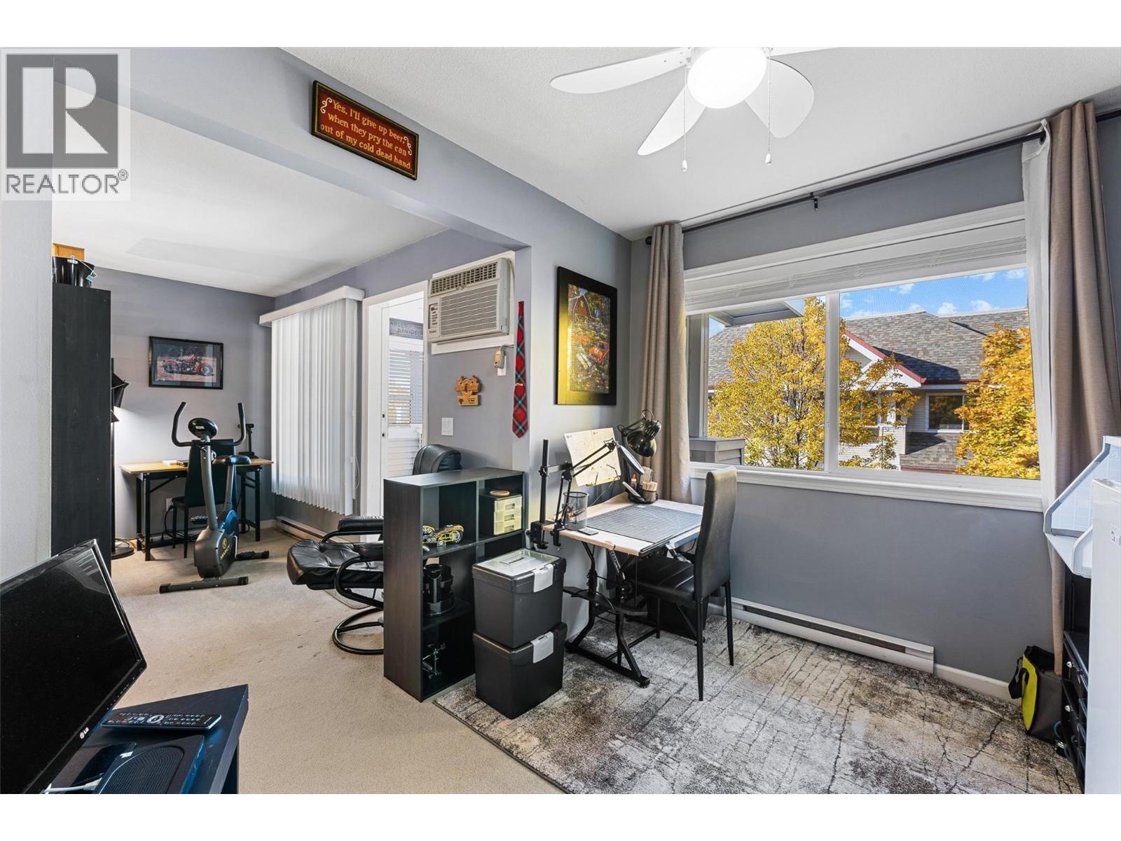 Perched quietly on the top floor, this 1-bedroom + den condo offers more than just a home, it offers peace of mind in a welcoming community. Designed for low-maintenance living, the open-concept layout features a functional kitchen with warm cabinetry and a double sink, flowing into an open living space and an enclosed sunroom that invites year-round use - think morning coffee nook, craft space, or a reading retreat. The den makes an ideal home office or hobby area and the unit has a washer & dryer. The building itself feels like an extension of your living room, with amenities including a clubhouse, shuffleboard, pool table, guest suite, gym, BBQ patio, and even garden plots for green thumbs. A secured parking spot, storage locker and workshop add practical appeal. Pet-friendly (1 cat or 1 small dog allowed) and just a short stroll to Capri Mall, groceries, and local dining, this unit offers comfort and connection in a convenient, central location.