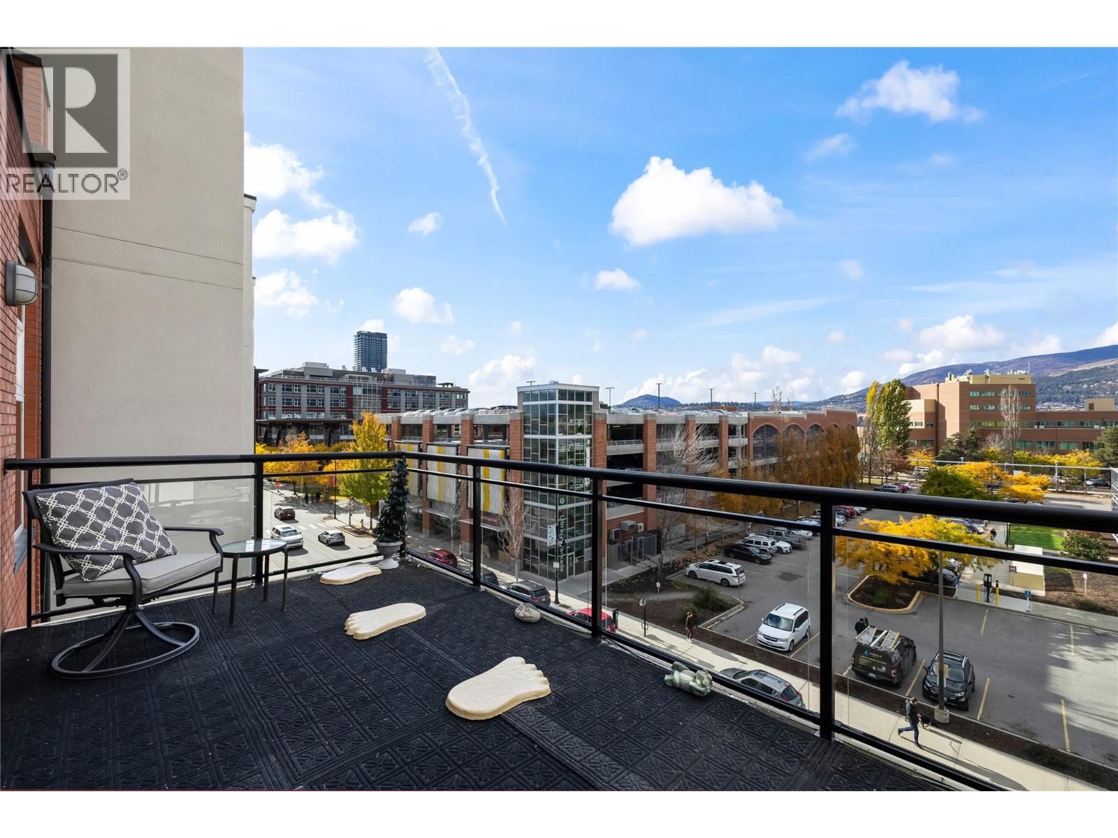 Downtown Kelowna Loft Living at Its Best — Nearly 2,000 Sq Ft of Bright, Stylish Space. A truly unique and rare offering in the heart of downtown Kelowna — welcome to Ellis Court. This exceptional home combines urban sophistication with spacious comfort, featuring soaring 20-foot ceilings, beautiful hardwood floors throughout, and expansive west-facing windows that fill the space with natural light and Okanagan Lake within sight. The main floor offers two generous bedrooms and two full baths, including a luxurious 5-piece primary ensuite and a 3-piece cheater ensuite for guests. A large uncovered balcony off the living area provides the perfect spot to take in the downtown sights and sounds. Upstairs, the massive loft offers flexible space for a third bedroom or media lounge, and an additional space for a home office, complete with its own 3-piece bath and two private balconies, ideal for enjoying quiet morning coffee or evening sunsets. Modern upgrades bring peace of mind, including: New furnace & A/C (2021), Washer & dryer (2021), Hot water tank (2017), Motorized blackout curtains in living room & loft (2024), New sliding patio doors (2020) and balcony flooring (2020). Ellis Court is pet-friendly (with restrictions) and includes 1 parking stall and 1 storage locker. Step outside your door to Prospera Place, Kelowna Community Theatre, the YMCA, local breweries, restaurants, and shops — all just minutes from the lake and beaches. This is downtown living without compromise.